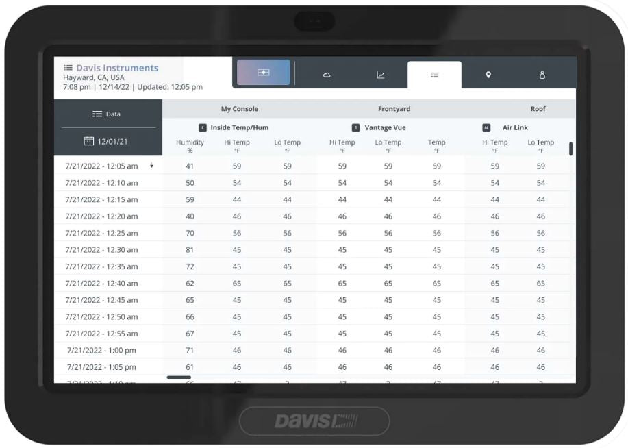 - Track detailed hourly and daily forecasts for the next 7 days when connected to the WeatherLink Cloud.